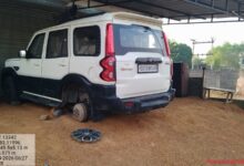 बेखौफ चोरों का दुस्साहस! थाने के नाक के नीचे खड़ी स्कॉर्पियो के दो पहिये पार, जनपद सदस्य की गाड़ी बनी निशाना