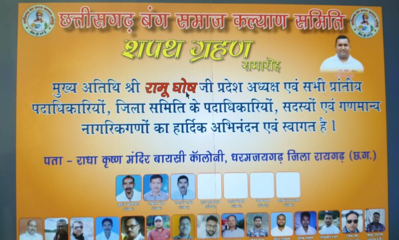 छत्तीसगढ़ बंग समाज कल्याण समिति द्वारा धरमजयगढ़ में संपन्न हुआ शपथ ग्रहण समारोह