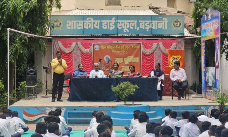 जय जोहार इंडिया TV न्यूज, बड़वानी 10 जुलाई 2025/लोक शिक्षण संचालनालय, भोपाल के निर्देशानुसार शासकीय पीएमश्री हाई स्कूल बड़वानी में 09 एवं 10 जुलाई 2025 को गुरु पूर्णिमा उत्सव गरिमामय वातावरण में उत्साहपूर्वक मनाया गया।
