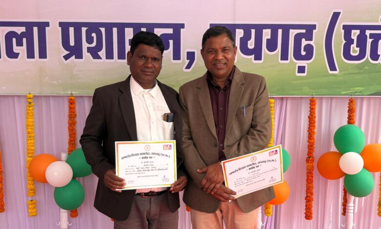 रायगढ़ : गणतंत्र दिवस के पावन अवसर पर आयोजित जिला स्तरीय मुख्य समारोह में धरमजयगढ़ ब्लॉक से शिक्षा विभाग के दो समर्पित शिक्षकों को उनकी उत्कृष्ट सेवाओं के लिए विशेष रूप से सम्मानित किया गया। दोनों शिक्षक रामविचार नेताम मंत्री, छत्तीसगढ़ शासन के हाथों सम्मानित हुए ।