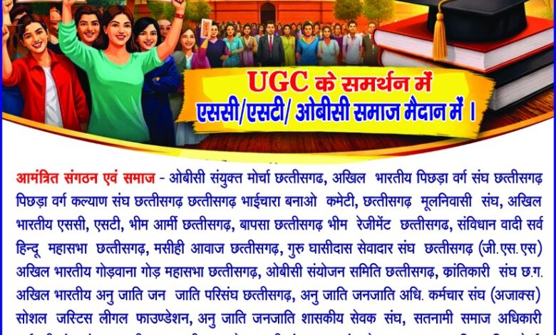 ऐतिहासिक हुंकार: यूजीसी एक्ट 2026 के समर्थन में छत्तीसगढ़ में ST, SC और OBC महा मोर्चा का विशाल प्रदर्शन आज