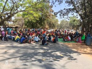 (नारेबाजी और धरने पर बैठे लोग)