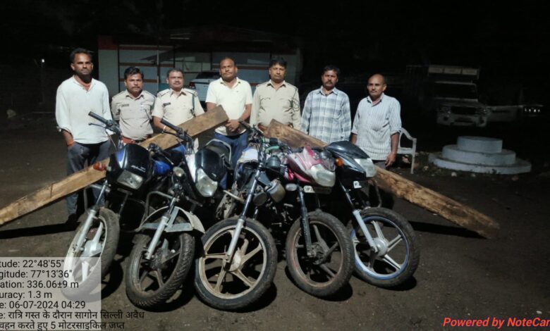वन विभाग लाड़कुई ने सागौन की लकड़ी का परिवहन करती पांच मोटरसाइकिल कि जप्त आरोपी फरार